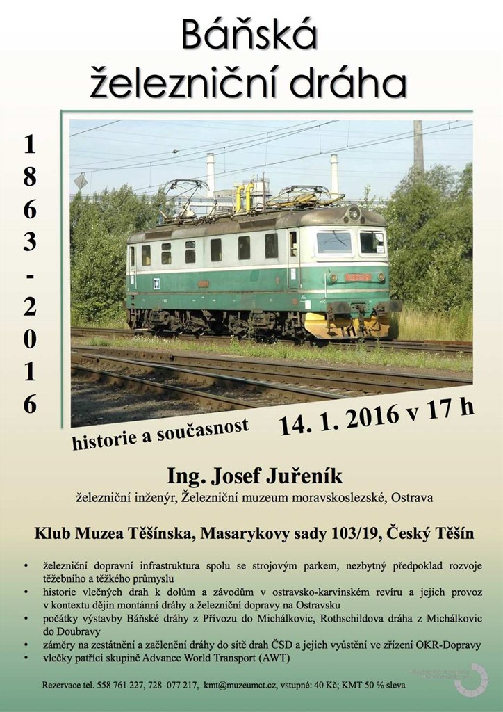 Klub Muzea Těšínska pořádá besedu/přednášku - Báňská železniční dráha - historie a současnost, 1863 - 2016