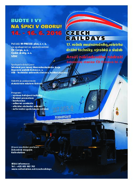 Mezinárodní veletrh drážní techniky, výrobků a služeb pro potřeby železniční a městské kolejové dopravy Czech Raildays 2016.