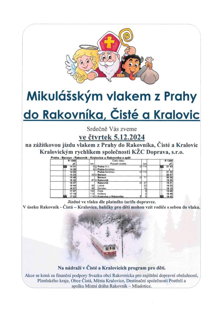 Mikuláš, anděl a čert přijedou letos do Čisté vlakem. Přijďte si pro nadílku na nádraží.