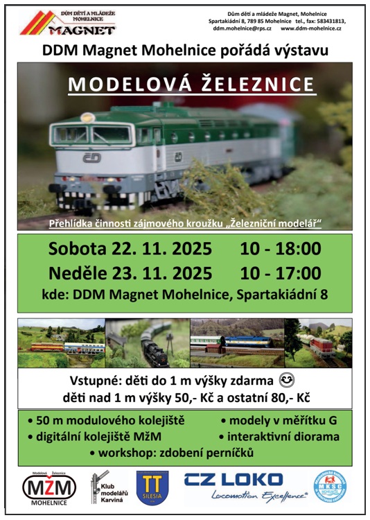Tradičně budou k vidění dvě digitální modulová kolejiště. Jeden 40ti metrový a druhý 15ti metrový layout modulového kolejiště. Dále pak pro nejmenší bude k dispozici 8mi metrový ovál v měřítku G.